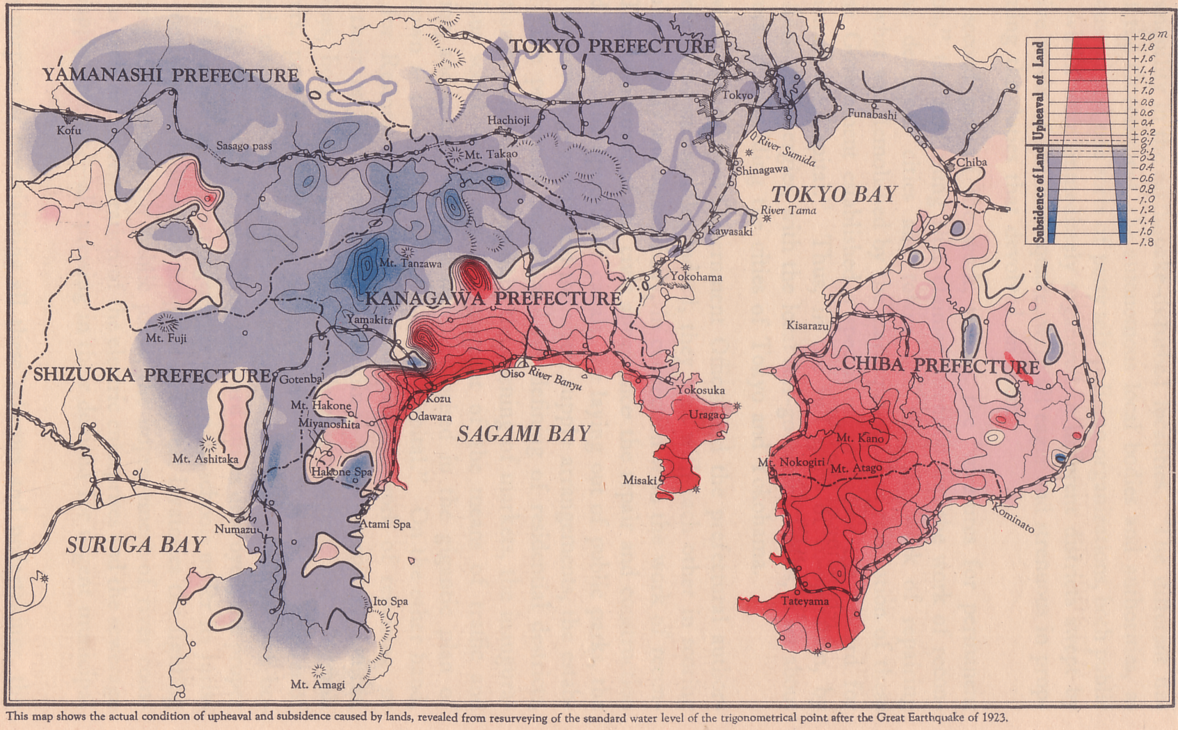 Map 4: Map showing perpendicular land changes caused by the Great Kanto Earthquake, 1923